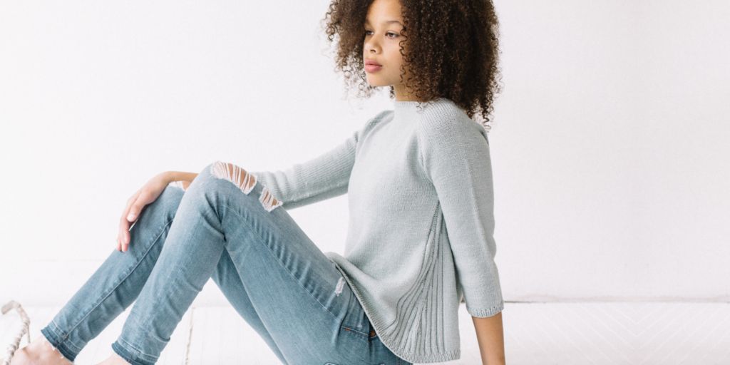 Расклешенный пуловер Galaxie Расклешенный пуловер спицами, связанный по кругу сверху вниз с описанием из Tern 2017. Модный женский пуловер, вязаный спицами сверху вниз с формированием регланом и расклешенной резинкой по бокам для летящего А силуэта.