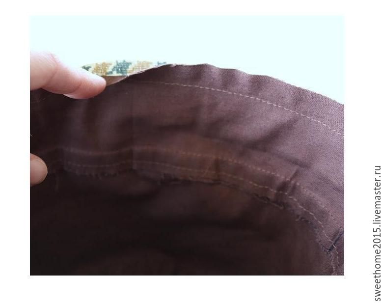 8. Вставляем одну часть в другую лицевыми сторонами к друг другу. И прошиваем по краю. Оставляем непрошитое отверстие для выворачивания.