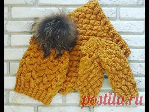 Красивый комплект спицами! Часть 1. Варежки, узор "плетенка". Mittens.