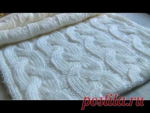 Вязаный шарф-снуд с косами. Снуд спицами в 2 оборота. Вязаные шарфы-снуды спицами