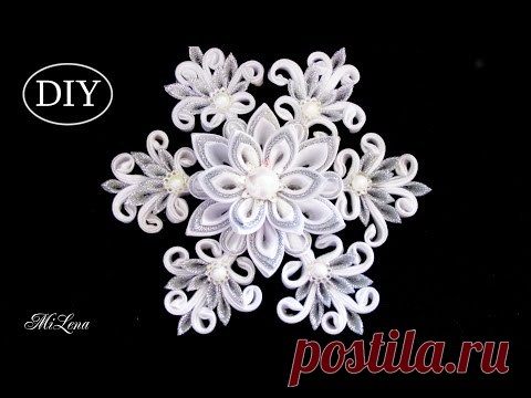 НОВОГОДНЯЯ СНЕЖИНКА КАНЗАШИ, МК / DIY Kanzashi Christmas Snowflake