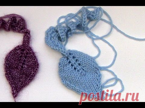 как вязать двойной полый листик спицами