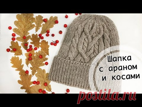 МК | Шапка с араном и косами | Вязание спицами | Схема и описание