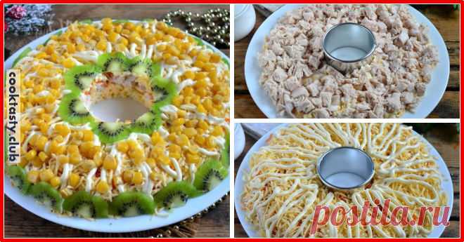 Салат с курицей к Новому году Ингредиенты: Куриная грудка — 300 Грамм Сыр твердый — 150 Грамм Яйца куриные — 4 Штуки Морковь — 1 Штука Киви — 1 Штука Кукуруза консервированная — 100 Грамм Майонез — 3 Ст. ложки Количество порций: 3-4 Как приготовить «Куриный салат на Новый год» Подготовьте все необходимые ингредиенты. Морковь и куриную грудку отварите до готовности, …