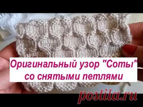 Узор "Соты" спицами со снятыми петлями- видео урок
