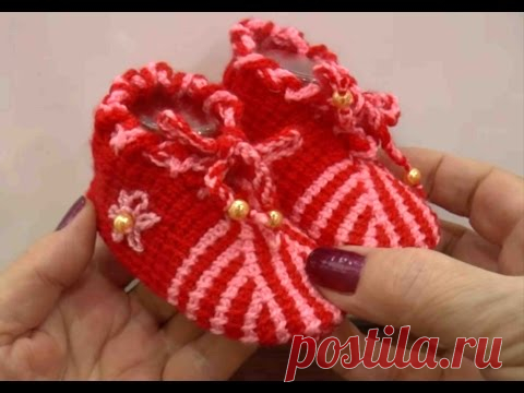 Пинетки тунисским крючком (Tunisian crochet knitting booties). Длина подошвы 9 см.