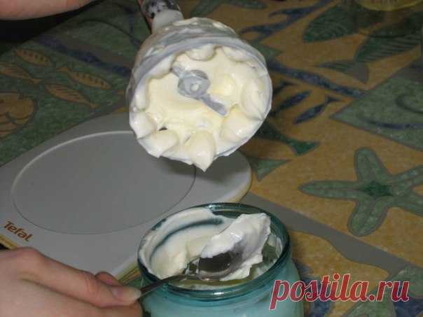 Майонез получается очень густой, не расслаивается, в холодильнике может храниться, не портясь, до двух недель.