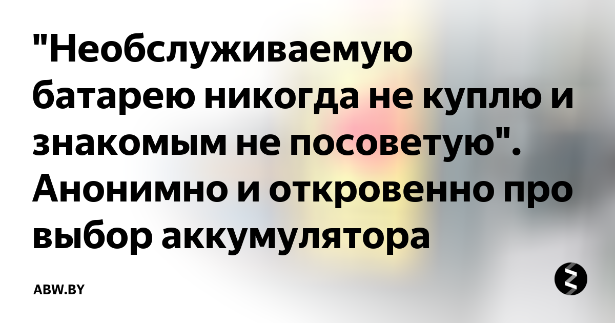 "Необслуживаемую батарею никогда не куплю и знакомым не посоветую". Анонимно и откровенно про выбор аккумулятора Стартерными аккумуляторами торгуют круглый год, но пик спроса на них приходится на первые сильные морозы, когда будто по мановению волшебной палочки аккумуляторные батареи мрут под капотом автомобилей как мухи. Выход аккумуляторов из строя отправляет владельцев в автомагазины, а вместе с ними для оценки рыночной ситуации в поход по торговым точкам ежегодно отпра...