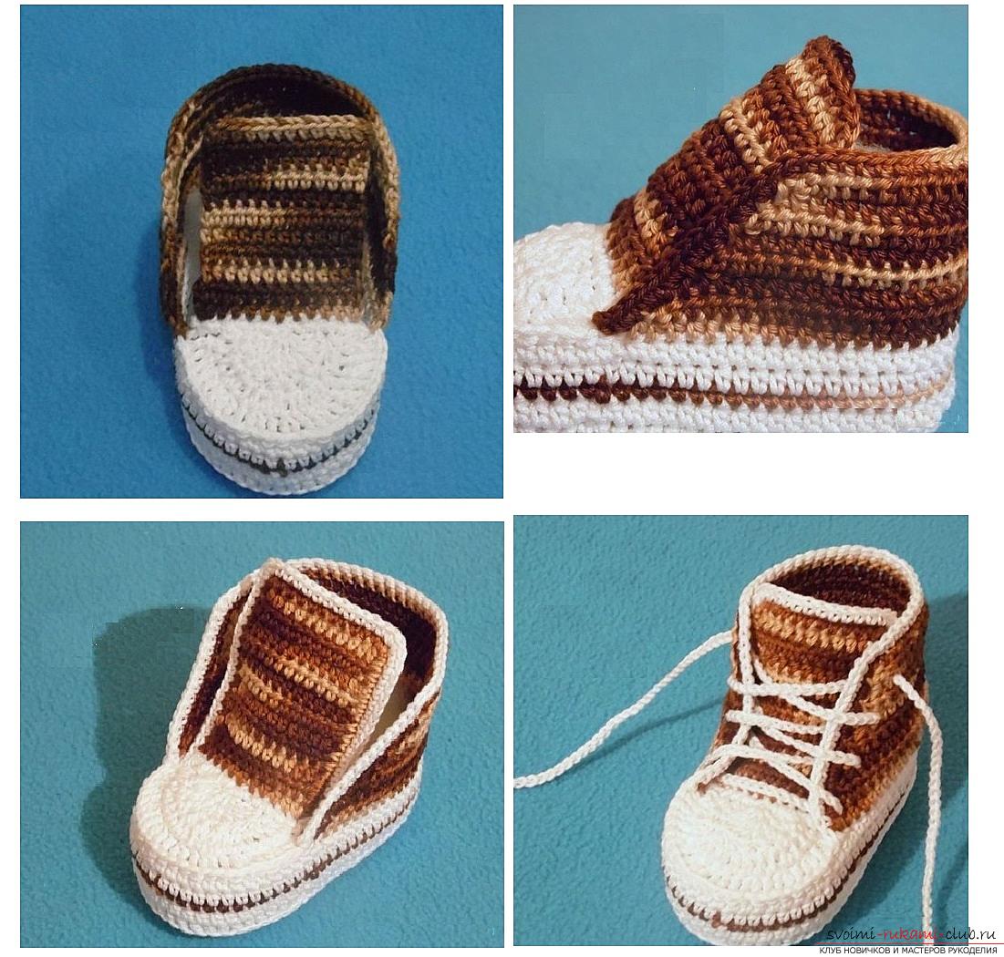 Как связать крючком пинетки в виде кедов, пошаговые фото, схемы и подробное описание двух вариантов вязания пинеток для малышей