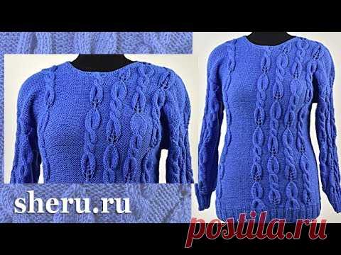 Косы и листья в свитере спицами. Урок 206 часть 1 из 2