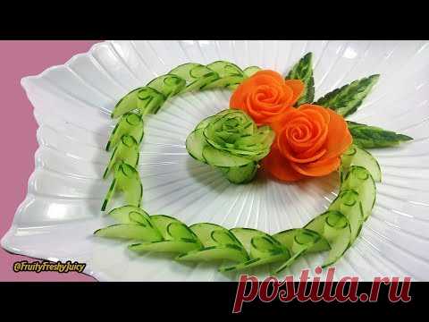 Художественный огурец, морковь Розовая резьба и дизайн - от овощей до цветочного гарнира