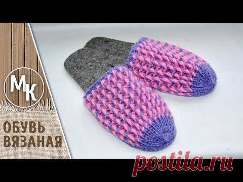 Gestrickte Schuhe - Flip-Flops auf Filz Sohlen. Gestrickte Hausschuhe. Video-Tutorials zu stricken - YouTube