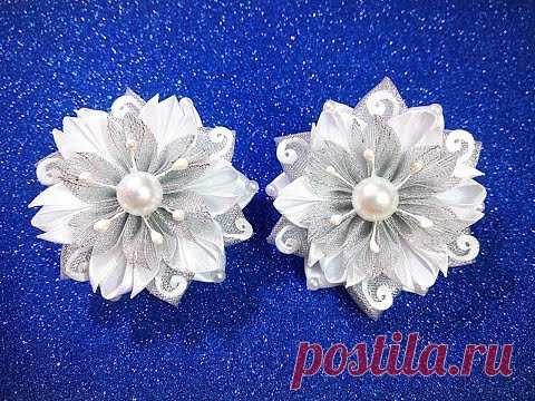 Новогодняя снежинка резинка из лент канзаши/ DIY Kanzashi Christmas Snowflake