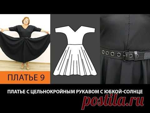 Платье отрезное без выкройки с треугольным вырезом и юбкой солнце с цельнокроеным рукавом Платье 9