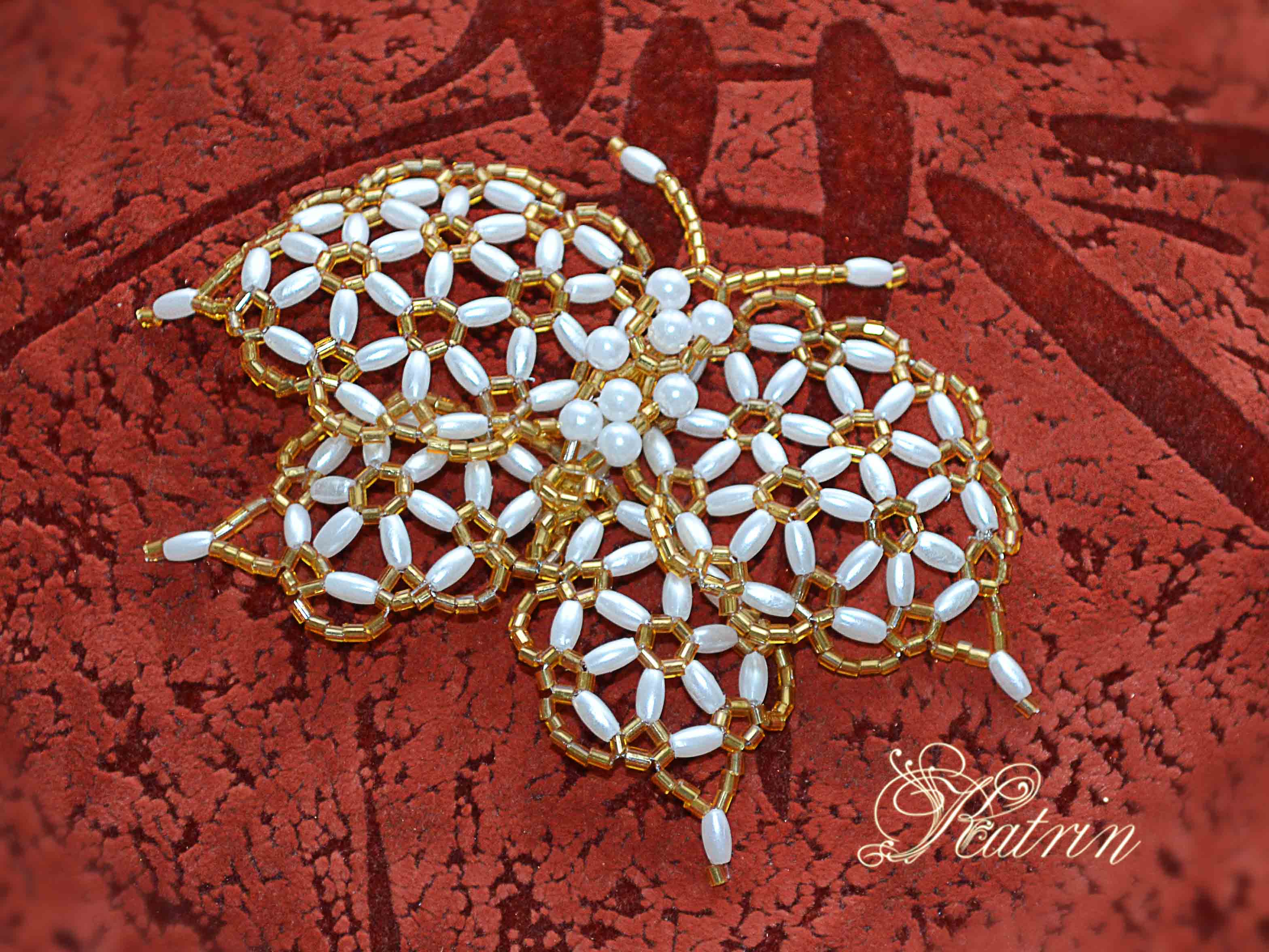 Брошь «Бабочка» ручной работы, выполнена из нежно бело-кремового и золотого бисера. Бусины крепятся на прочную леску, а каркас укреплен металлической проволокой, за счет этого данное изделие не теряет форму и выглядит объемно. Размер броши 11x8см, застежка -декоративная булавка. «Бабочка» будет актуальным и модным аксессуаром для Вашего платья, блузки, вязаных вещей. С таким украшением Ваш образ станет изысканным и стильным.