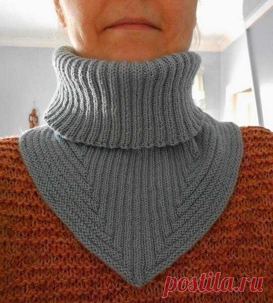 Вязать надо снизу, и начинать спицами большого размера, чтоб вокруг шеи ложился не сворачиваясь.