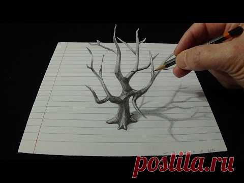 Art 3D Drawing Old Tree - How to Draw 3D Tree with Pencil