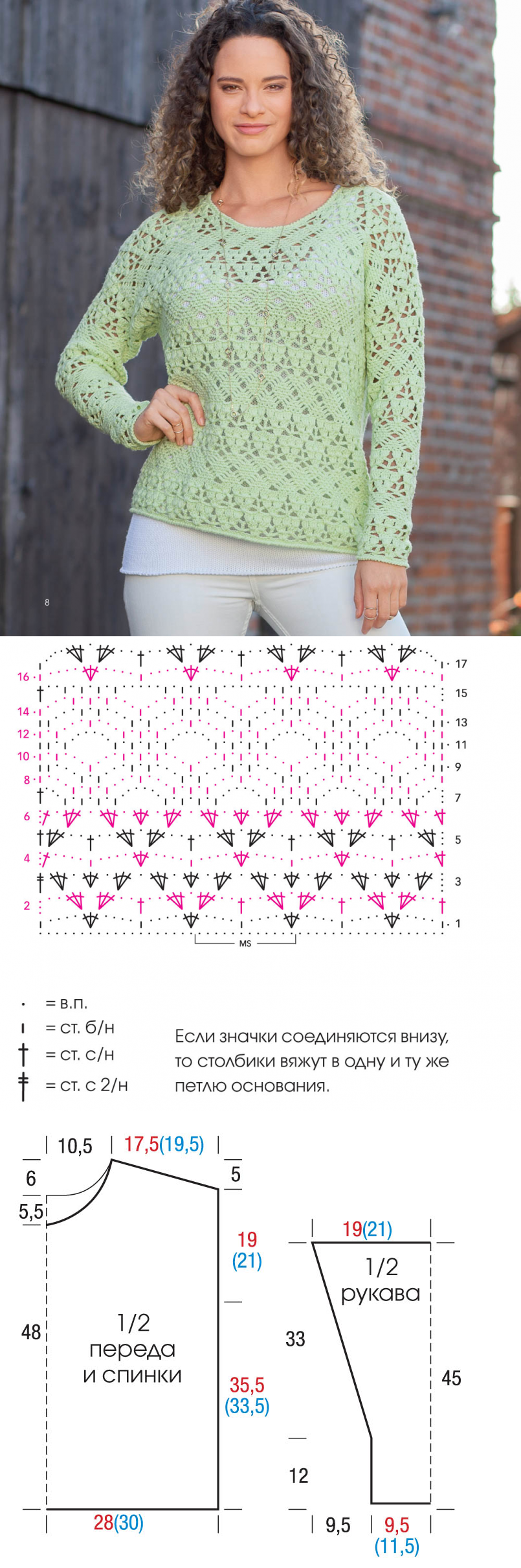 Ажурный пуловер на весну - схема вязания крючком. Вяжем Пуловеры на Verena.ru