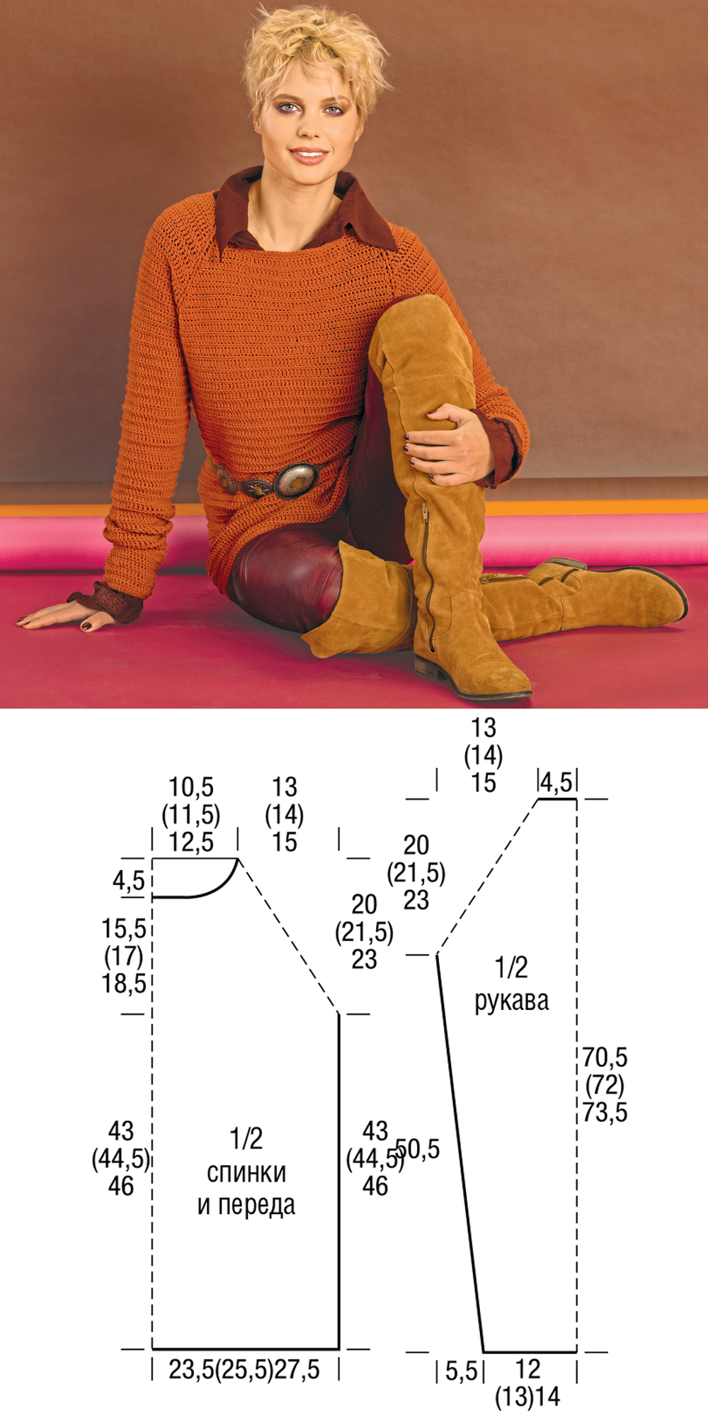 Джемпер с рукавами реглан - схема вязания крючком. Вяжем Джемперы на Verena.ru