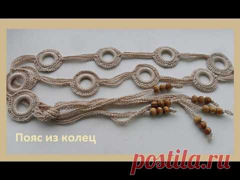 Пояс связанный из колец.Crochet a belt of rings (узор № 119) Пояс связанный из колец крючком, мастер -класс по вязанию красивого и оригинального пояса из колечек , нитки хлопок 240м в 50гр, крючок 2, кольца 28мм, расхо...