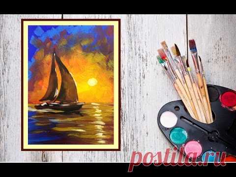 Видео урок Рисуем гуашью Закат и парусник в стиле Афремова