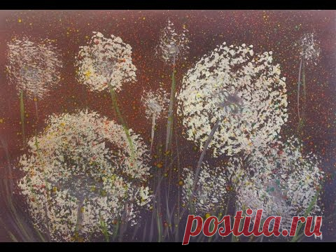 Картина за 3 минуты! Рисуем одуванчики гуашью.