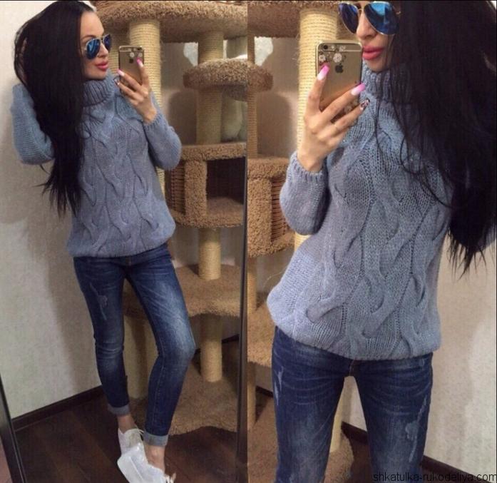 Стильный свитер спицами Стильный свитер спицами с высоким горлом. Схема на 9 петель, для данной модели количество петель косы должно делиться на 3, Далее переплетаете по очереди центральная+правая, потом центральная+левая…