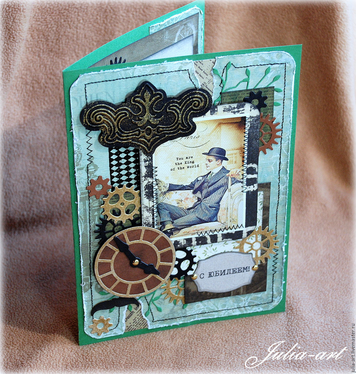 Купить Мужская открытка "С юбилеем" в интернет магазине на Ярмарке Мастеров Купить или заказать Мужская открытка "С юбилеем" в интернет магазине на Ярмарке Мастеров. С доставкой по России и СНГ. Срок изготовления: 1-2 дня. Материалы: скрап материалы. Размер: 15х20 см