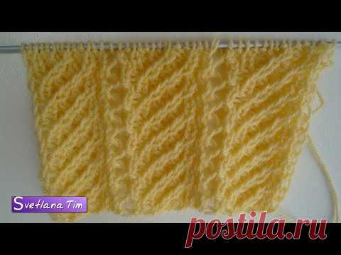 АЖУРНЫЙ УЗОР с ДИАГОНАЛЬНЫМИ ПОЛОСОЧКАМИ. Вязание спицами # 321