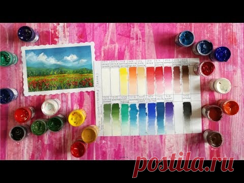 Обзор гуаши "Гамма" в отдельных баночках и Пейзаж с маками