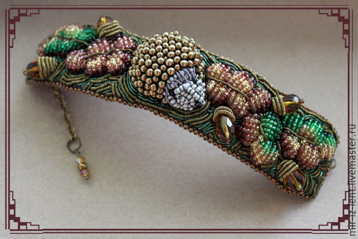 Арт-браслет «Осенний сюжет» в технике объемной вышивки - Ярмарка Мастеров - ручная работа, handmade
