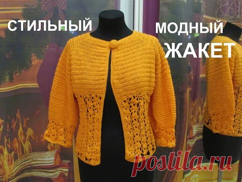 СТИЛЬНЫЙ И МОДНЫЙ ЖАКЕТ КРЮЧКОМ.АЖУРНЫМ УЗОРОМ.