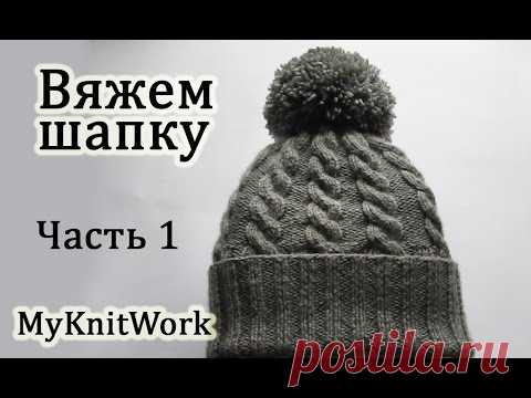 Как вязать шапку спицами. Вяжем шапку с бубоном. How to knit a hat spokes. Knit cap with a bubo.
