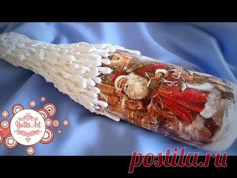 Очень легкий декор бутылки к новому году. Новогодний декупаж