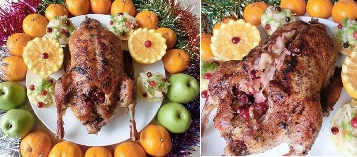 Великолепный «Рождественский» гусь с квашеной капустой и яблоками