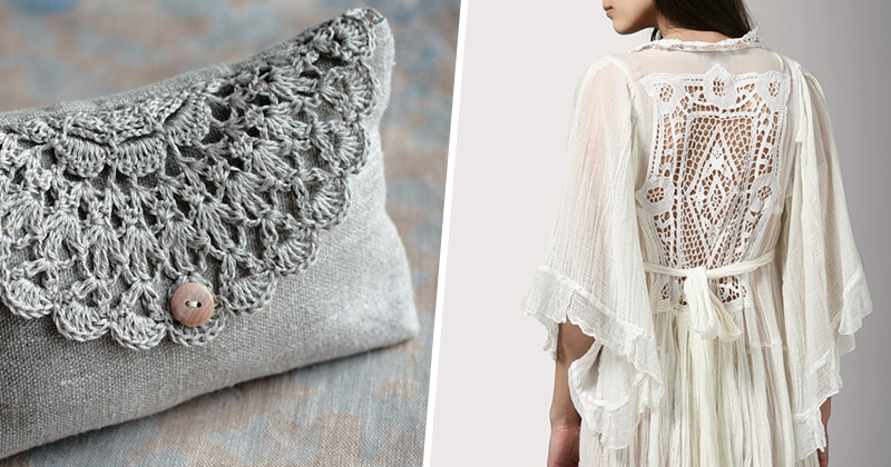 Интересные идеи декора одежды и аксессуаров вязаными элементами Вы умеете шить и не умеете вязать? Не беда, приобретите готовые вязаные элементы, такие как салфетки, дорожки, столешницы и накомодники, и вперёд! Смело декорируйте кофточки, сумочки, юбочки, броши, делайте беретики. Особенно всё это подходит к стилю бохо. А красивый кружевной зонтик очень просто сделать для себя или для своей маленькой принцессы. Покупаете готовый зонтик-трость, они сейчас…