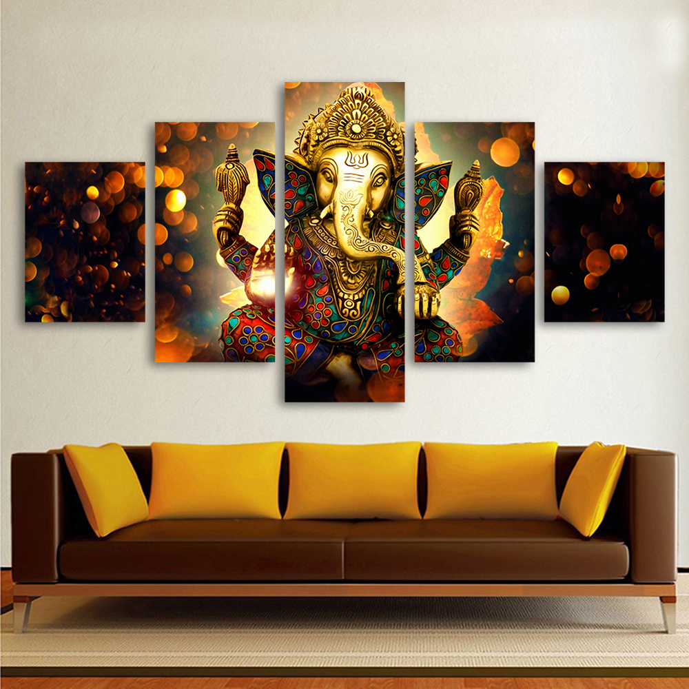 Hdartisan холст настенная живопись Книги по искусству Домашний декор для Гостиная HD печатает 5 шт. слон БОГА ГАНЕШИ плакат картина купить на AliExpress