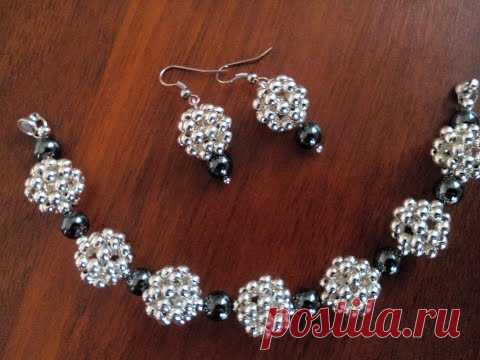 Браслет и серьги из бусин. МК шарика из бусин