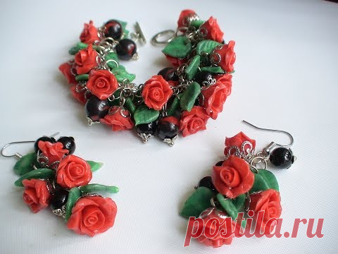 Браслет и серьги "Красные розы" из холодного фарфора-Bratara si cercei "Trandafiri rosii"