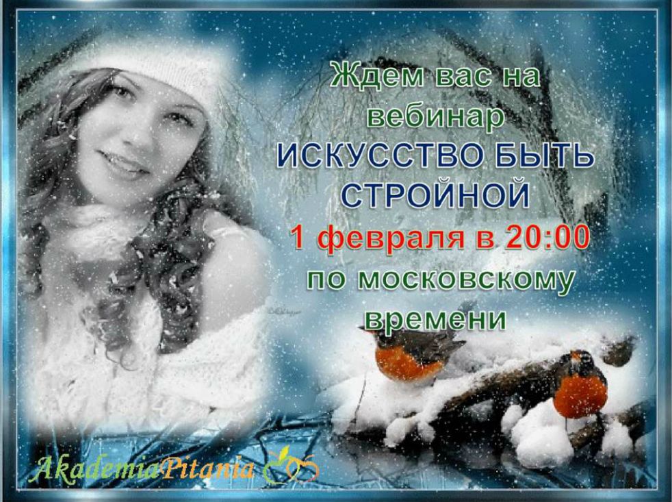 ВНИМАНИЕ !!! НЕ ПРОПУСТИТЕ!!! СУББОТНИЕ ПОСИДЕЛКИ!! в 20.00 мск !!! ТЕМА : "Влияние физических упражнений на формирование фигуры” Это ссылка на мой мини-сайт http://4.ak-pitaniya.com/ откуда Вы сможете зайти на занятие. Для посещения занятия необходимо: 1) Ввести свое имя и фамилию, 2) Нажать кнопку "ВХОД" С уважением, тренер по питанию Тамара Козубенко