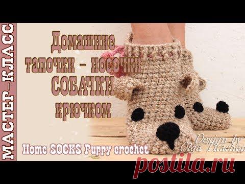 Домашние Носки "Собачки" крючком. ВЯЗАНИЕ крючком носки. КАК ВЯЗАТЬ домашние следки крючком. Урок 72