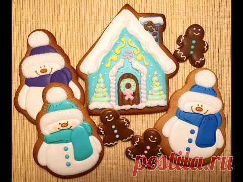Имбирные пряники Роспись Айсинг Пряничный домик и снеговик