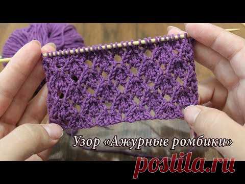 Узор спицами «Ажурные ромбики», видео |Openwork Diamond knitting pattern