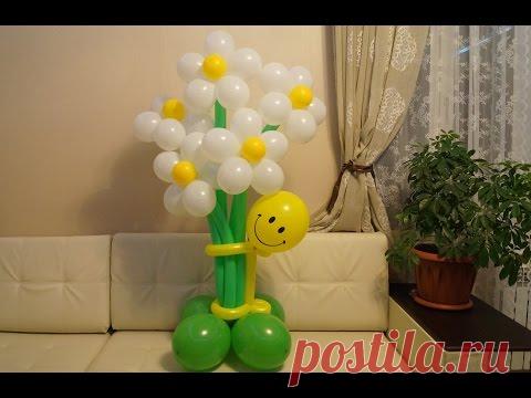 Букет ромашек со смайлом из шаров своими руками. Bouquet of daisies with a smiley with his hands.
