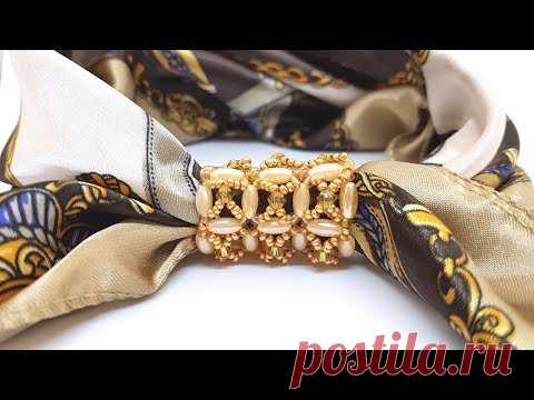 Зажим для платка. Брошь для платка. Бисер мастер класс.