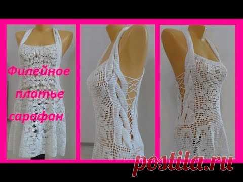 Филейное платье - сарафан, crochet dress ,( В № 83)