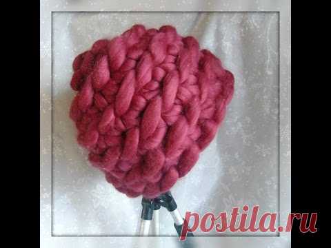 Шапочка из супер-толстой пряжи. Имитация вязания крючком.