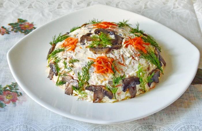 Салат корейская морковь, курица и шампиньоны с майонезом