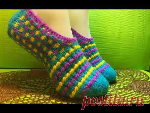 Вязание спицами домашние тапочки #198