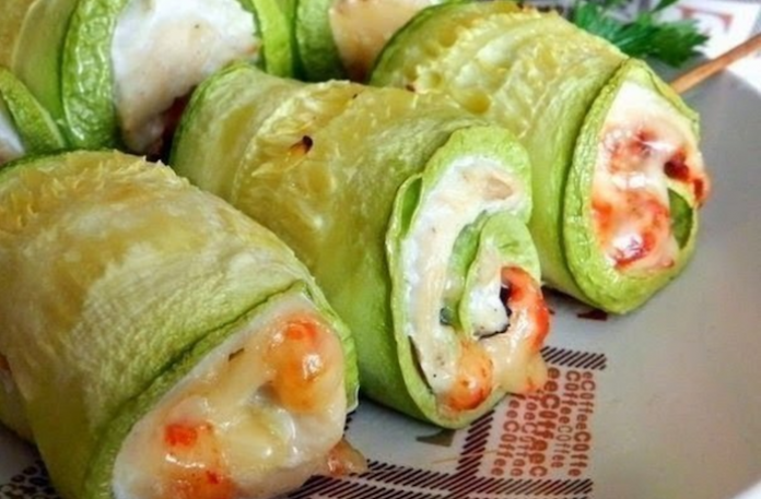 Кабачковые рулетики: Самое необычное блюдо в моей жизни! Ну очень вкусное Ингредиенты: Курица (филе) — 1 шт. Кабачки молодые — 2 шт. Сыр твердый — 50 г Чеснок — 2 зубчика Соус из паприки готовый Базилик — несколько листиков...